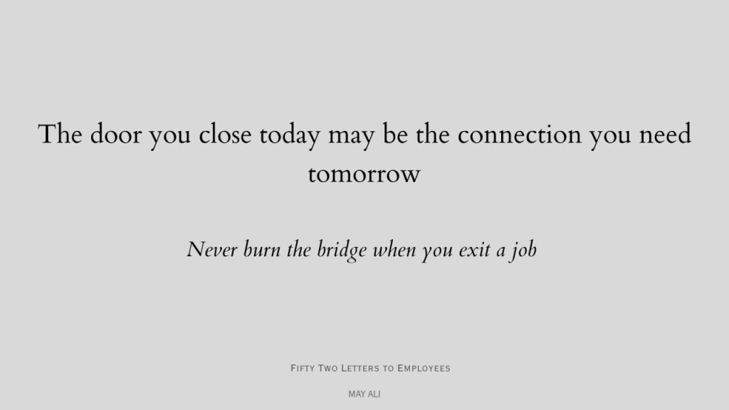 Leave jobs with grace. Close chapters without burning pages. Let people remember you for your professionalism not your frustration.